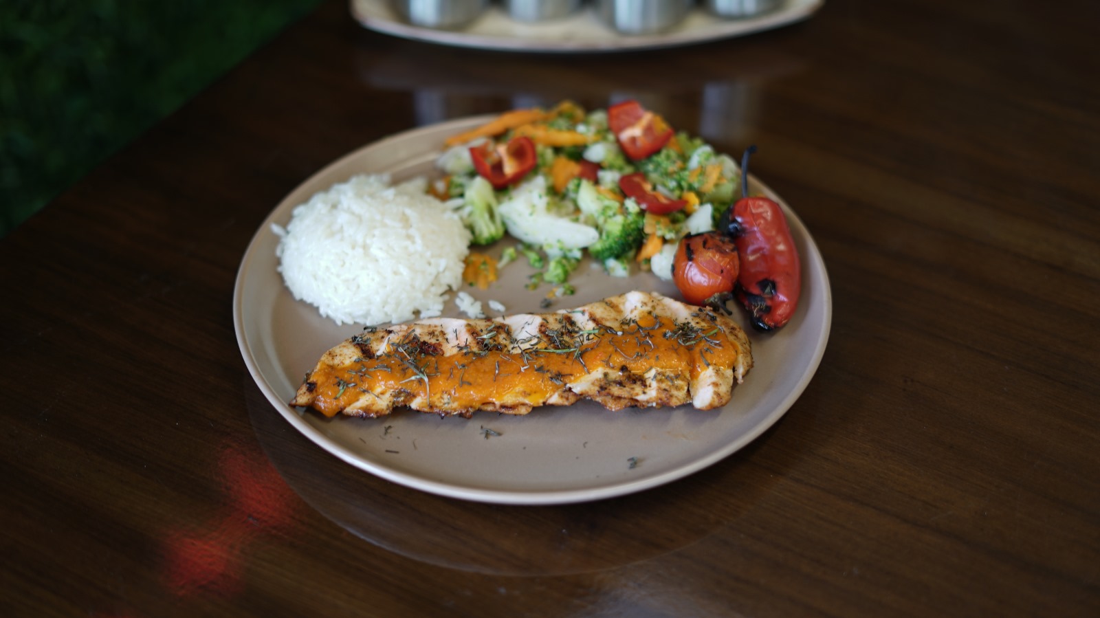 İçerik: tavuk göğsü domates sos sebze garnitür taze kekik |